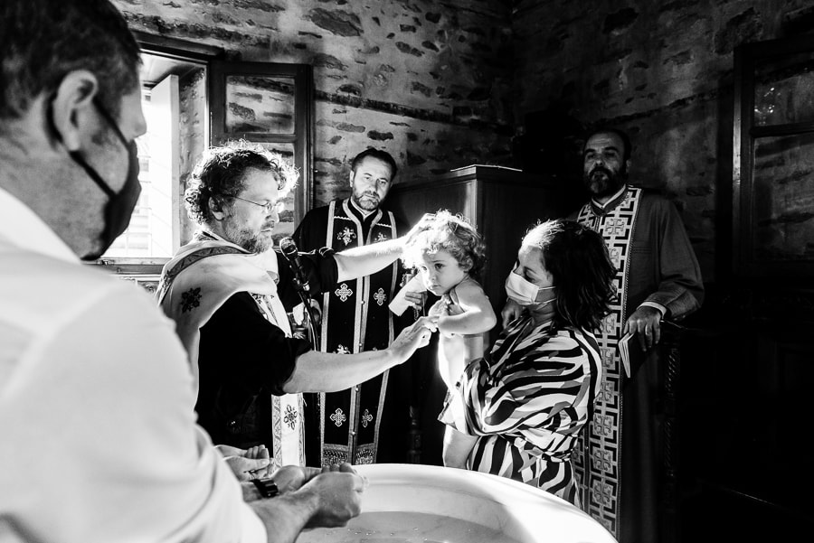 The baptism of little Vasilis took place in the Vlatadon Monastery in the Upper Town of Thessaloniki. A church that many couples choose for the baptism of their child as the view from the Upper Town and the calm environment offer you a relaxation and give you the feeling of being outside the city. Vasilis together with his older brother and the rest of his company gave me unique moments and beautiful photos.