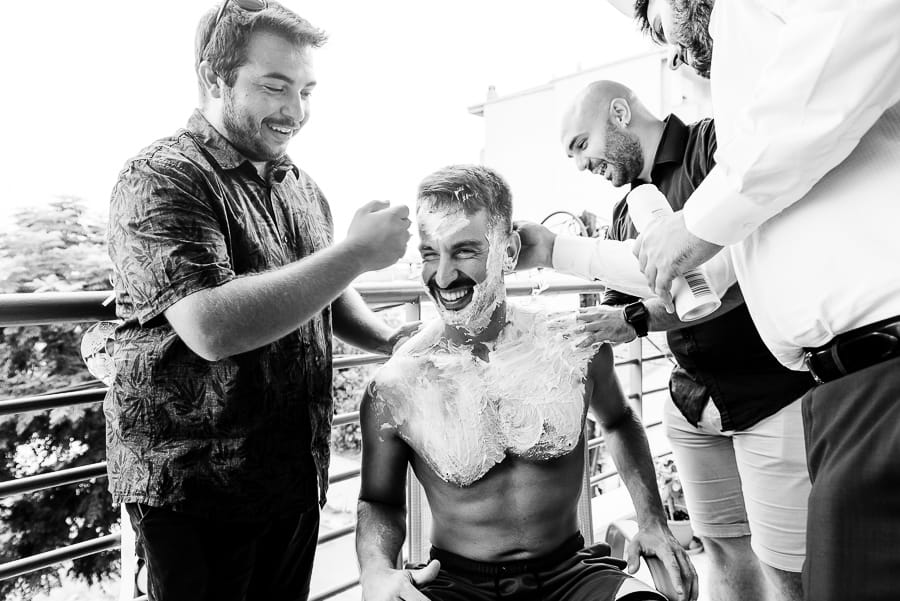For the wedding of Chrysa and Vasilis, we went to the Prefecture of Pella, specifically to Giannitsa. The photoshoot started with the preparations of the couple, where Vasilis friends definitely stole the show, as they imposed their own way on how to properly shave and dress the groom! Vasilis choice of wedding suit was made by the Merkos Manolopoulos store. At Chrysa's house her friends had gathered early, to help her, tease her, dance and show her off. The treats and "cheers" were endless and the joy had spread to every corner of the house. Chrysa was left in the hands of Maria Lazarou for the bridal make-up and for the bridal hairstyle at Ragio, while her choice for the wedding dress was made by Trikalioti bridal and for the bridal shoes by Nak. The moment that stole the show was definitely when Chrysa's grandmother showed her off in her wedding dress via video call. The couple chose the Holy Monastery of Agia Paraskevi for the wedding ceremony and Glava company made sure to create a romantic atmosphere with minimal textures for its decoration. Vasilis arrived at the church accompanied by instruments under the gaze of his friends and relatives, while a bit later Chrysa also arrived accompanied by her brother and father. The wedding party was planned in the outdoor space of the natural history museum Okeanos and behind the consoles was the DJ party company to excite young and old with its musical selections. Colourful photorhythms and endless happiness were the recipe for a wild party! The couple's modern wedding site was created by My wedsite.